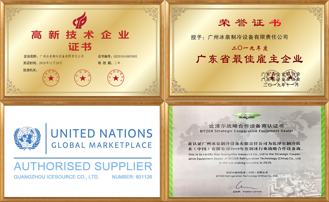 被評(píng)為“廣東省優(yōu)秀企業(yè)”; 入選“廣東企業(yè)創(chuàng)新能力500強(qiáng)”,制冰設(shè)備行業(yè)唯一一家; 通過(guò)國(guó)家“知識(shí)產(chǎn)權(quán)管理體系”認(rèn)證; 被中國(guó)(廣州) 國(guó)際漁業(yè)博覽會(huì)評(píng)為“最受歡迎的冷鏈物流供應(yīng)商”