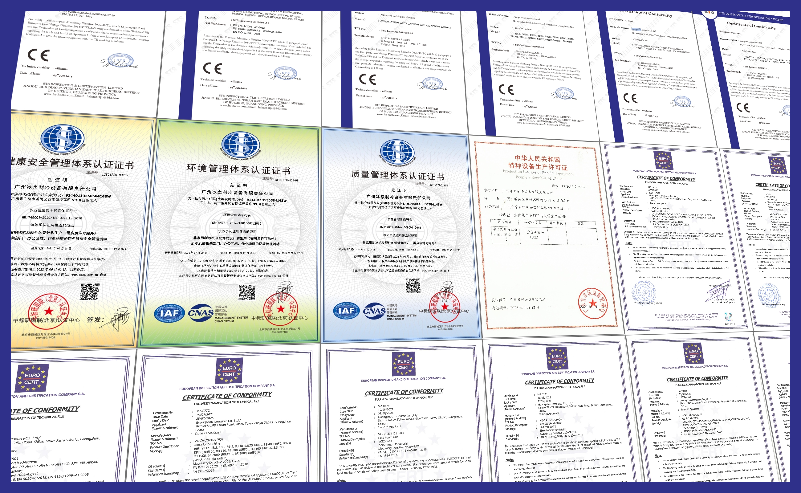 2021年7月,連續(xù)獲得“環(huán)境管理體系認(rèn)證證書(shū)” 連續(xù)獲得“壓力容器證書(shū)” 連續(xù)獲得“國(guó)家高新技術(shù)企業(yè)” 連續(xù)獲得“廣東省守合同重信用企業(yè)” 連續(xù)四年“比澤爾戰(zhàn)略合作設(shè)備商認(rèn)證書(shū)” 連續(xù)獲得“職業(yè)健康管理體系認(rèn)證證書(shū)” 連續(xù)獲得“質(zhì)量管理體系認(rèn)證證書(shū)” 11月,獲得“MD指令證書(shū)”與“PED指令證書(shū)”,產(chǎn)品設(shè)備無(wú)阻進(jìn)入歐盟市場(chǎng)。