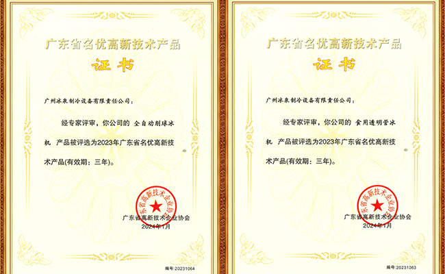 公司被廣東省科學(xué)技術(shù)廳認(rèn)定為“廣東省制冰設(shè)備工程技術(shù)研究中心”。