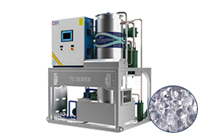 管冰機為制冰機的一種,因其所生產(chǎn)冰塊形狀為不規(guī)則長度中空管型而得名,管冰外直徑分為φ20mm、φ28mm、φ35mm等多種規(guī)格,長度30~60mm不等,中間的內(nèi)孔直徑可根據(jù)制冰的時間調(diào)整,一般在φ5~10mm之間。冰塊較厚且透明、美觀,儲存期長,不易融化,透氣性好。主要用途:日常食用、蔬菜保鮮、漁船水產(chǎn)品保鮮等。