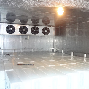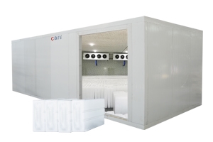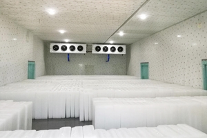 對(duì)于集中販?zhǔn)郾鶋K和用冰周期不定以及擁有大型噸位制冰機(jī)的用戶,配置低溫儲(chǔ)冰庫(kù)是必須的。制冰機(jī)提前工作,將做好的冰集中儲(chǔ)存在冷庫(kù)中,可以提高經(jīng)濟(jì)效益。低溫儲(chǔ)冰庫(kù)儲(chǔ)存溫度要求在-10℃以下。