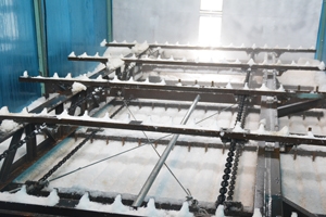 耙式自動(dòng)儲(chǔ)冰庫(kù)的上、下、四周及庫(kù)門(mén)都有保溫層,另外附帶一個(gè)制冷機(jī)組,將冰庫(kù)的內(nèi)溫度降低并保持在-10℃,并且在庫(kù)內(nèi)有機(jī)械設(shè)備,可將儲(chǔ)存的冰耙平、自動(dòng)將冰輸送到出冰口。耙式自動(dòng)儲(chǔ)冰庫(kù)一般為中型儲(chǔ)冰庫(kù),儲(chǔ)冰量50~200噸,可根據(jù)客戶的實(shí)際情況定做。