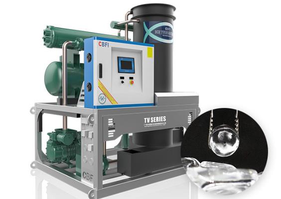 5噸管冰機采用水冷方式,適合大產(chǎn)量需求,如日產(chǎn)量可達5噸。水冷系統(tǒng)因其高效散熱,在高溫環(huán)境下比風冷更為有效,耗電量相對較低,每噸冰耗電約70KWH。