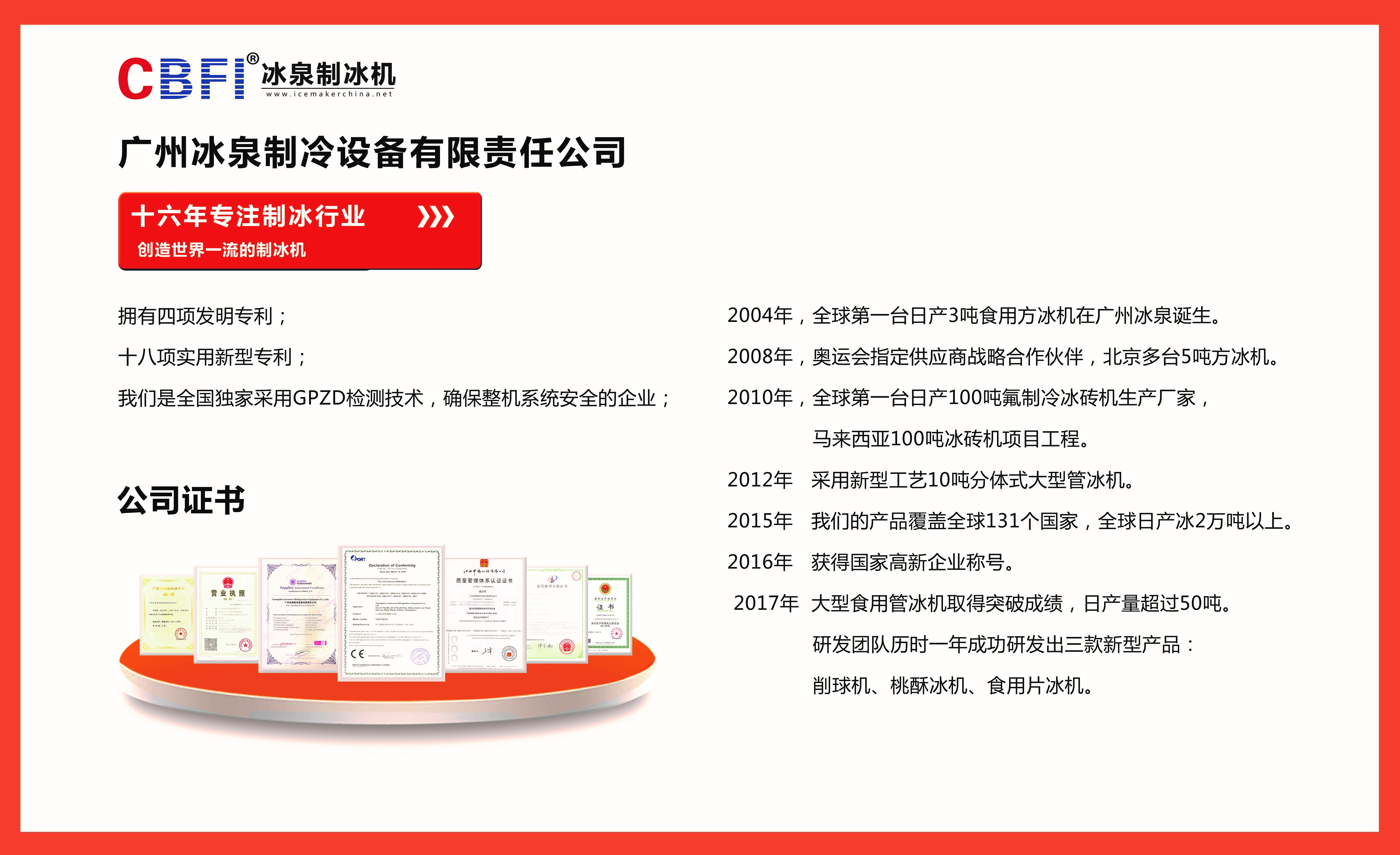 本屆展會(huì),廣州冰泉制冷有限責(zé)任公司將推出最新研制開發(fā)的三款高端產(chǎn)品:削冰球機(jī)(滿足高檔冰型需求)、桃酥冰機(jī)(一種口感極佳新型食用冰)、食用片冰機(jī),同時(shí)也將展出食用方冰機(jī)、冷庫、智能冷庫源等。