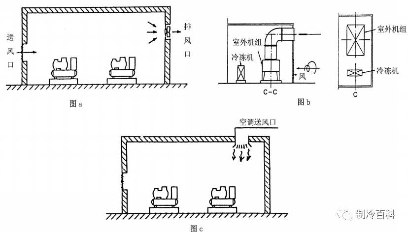 為防止冷凍機(jī)組排熱氣體滯留,機(jī)房需設(shè)置換氣裝置。換氣扇直接面向門或窗;換氣口面積是門(或窗)的內(nèi)部尺寸有效面積;機(jī)械換氣裝置原則上作為排氣裝置,必須保證所需的排氣容量。