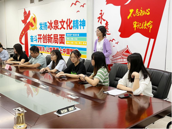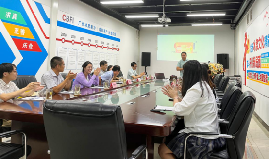 在公司一樓會(huì)議室,老師們觀看了冰泉企業(yè)介紹短片,人資部梁主管向鐘副校長(zhǎng)、張副院長(zhǎng)、陳副院長(zhǎng)介紹了去年冬招在華商學(xué)院的招聘情況及冰泉培訓(xùn)體系,先后共有四位同學(xué)成功入職冰泉外貿(mào)部,成為冰泉的一份子。