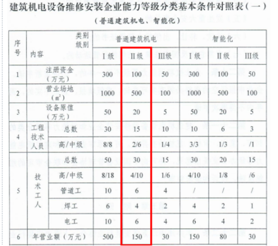 根據(jù)《建筑機(jī)電設(shè)備維修安裝企業(yè)能力等級(jí)分類辦法(修訂)》,建筑機(jī)電設(shè)備維修安裝能力等級(jí)范圍,涵蓋普通建筑機(jī)電、智能化、制冷空調(diào)等設(shè)備系統(tǒng)維修安裝項(xiàng)目,是指一般工業(yè),公用工程及公共建筑竣工后運(yùn)行中的運(yùn)行操作、維修保養(yǎng)和節(jié)能改造項(xiàng)目,包含各相應(yīng)專業(yè)設(shè)備和系統(tǒng)的檢測(cè)診斷、維修、保養(yǎng)、運(yùn)行托管等運(yùn)維服務(wù)和節(jié)能改造安裝、能源管理等服務(wù)。